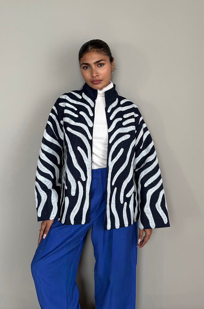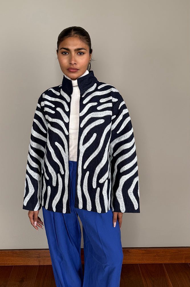 100% Upcycled Denim with 100% Cotton Lining and 100% Wool Embroidery